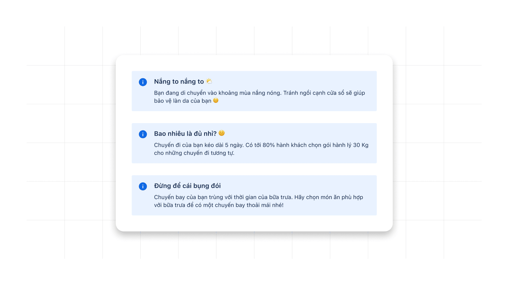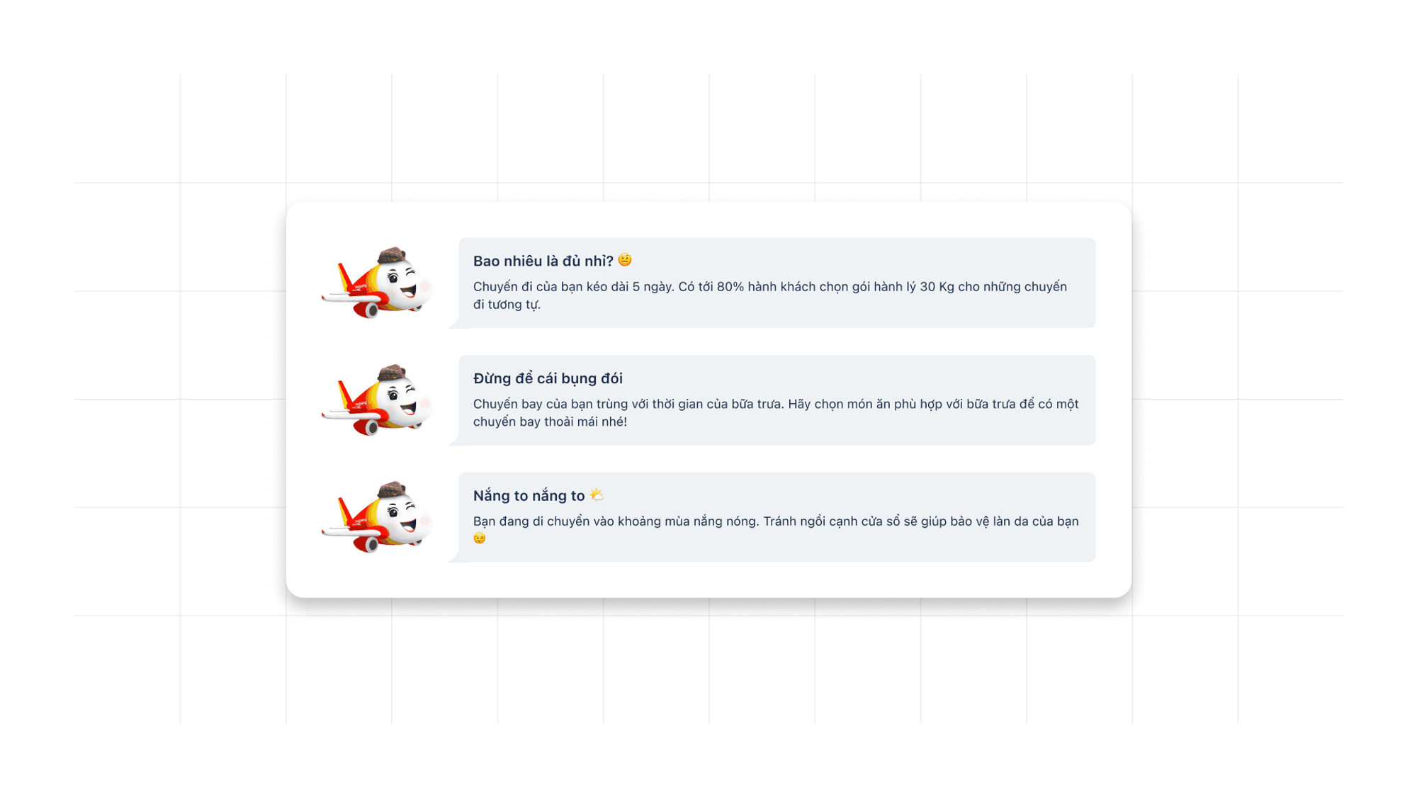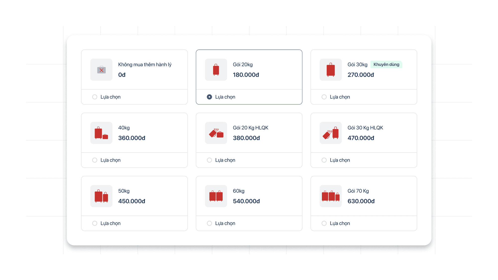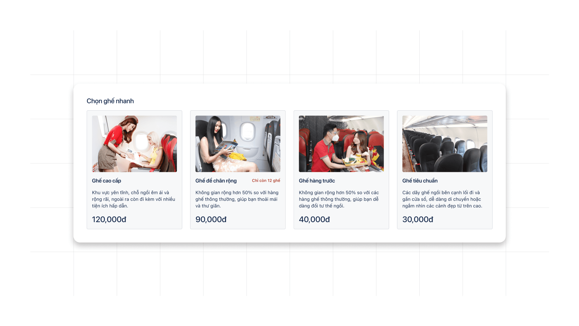We make a major tweak to the flow, to sell more services, instead of just letting the user choose which service suits them, we walk them through all the service purchase screens of Vietjet Air for promotion opportunities. Of course, we still allow user to Skip through.