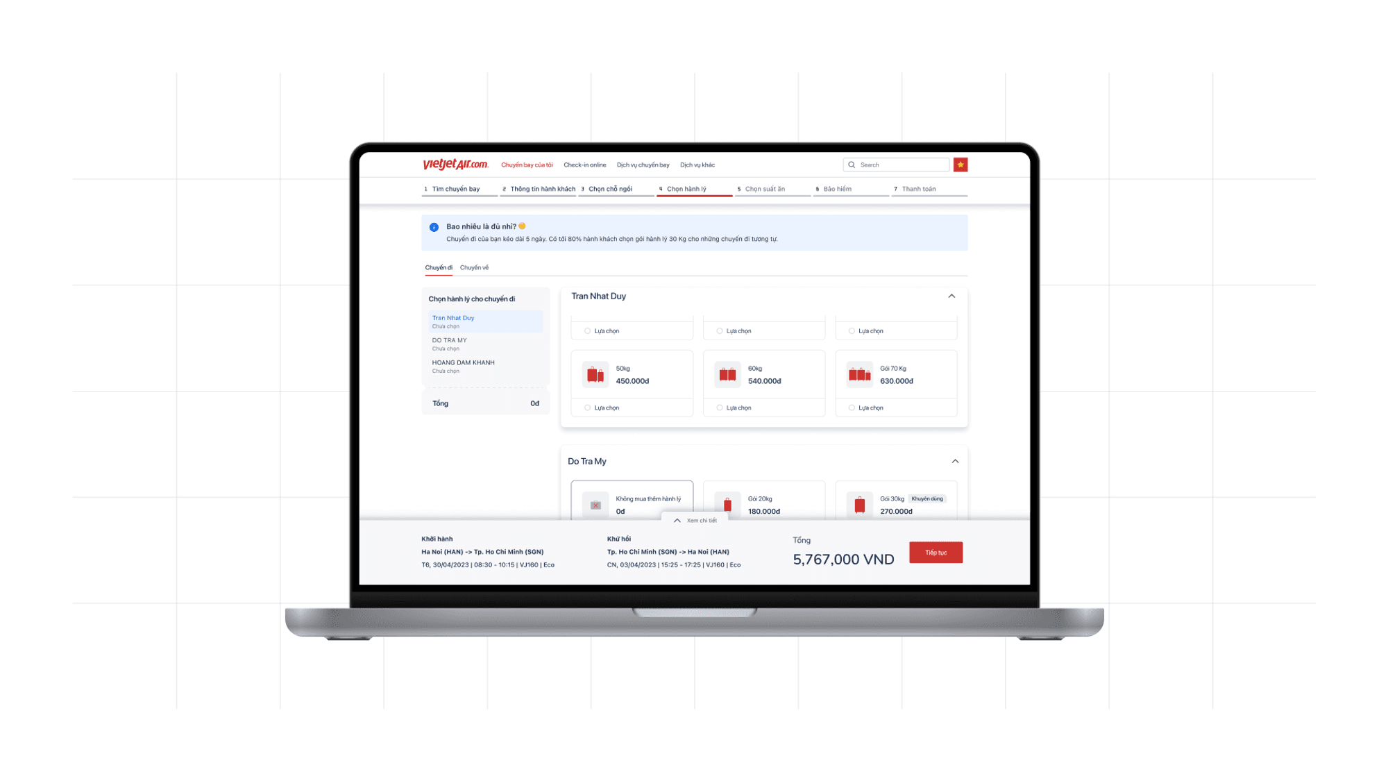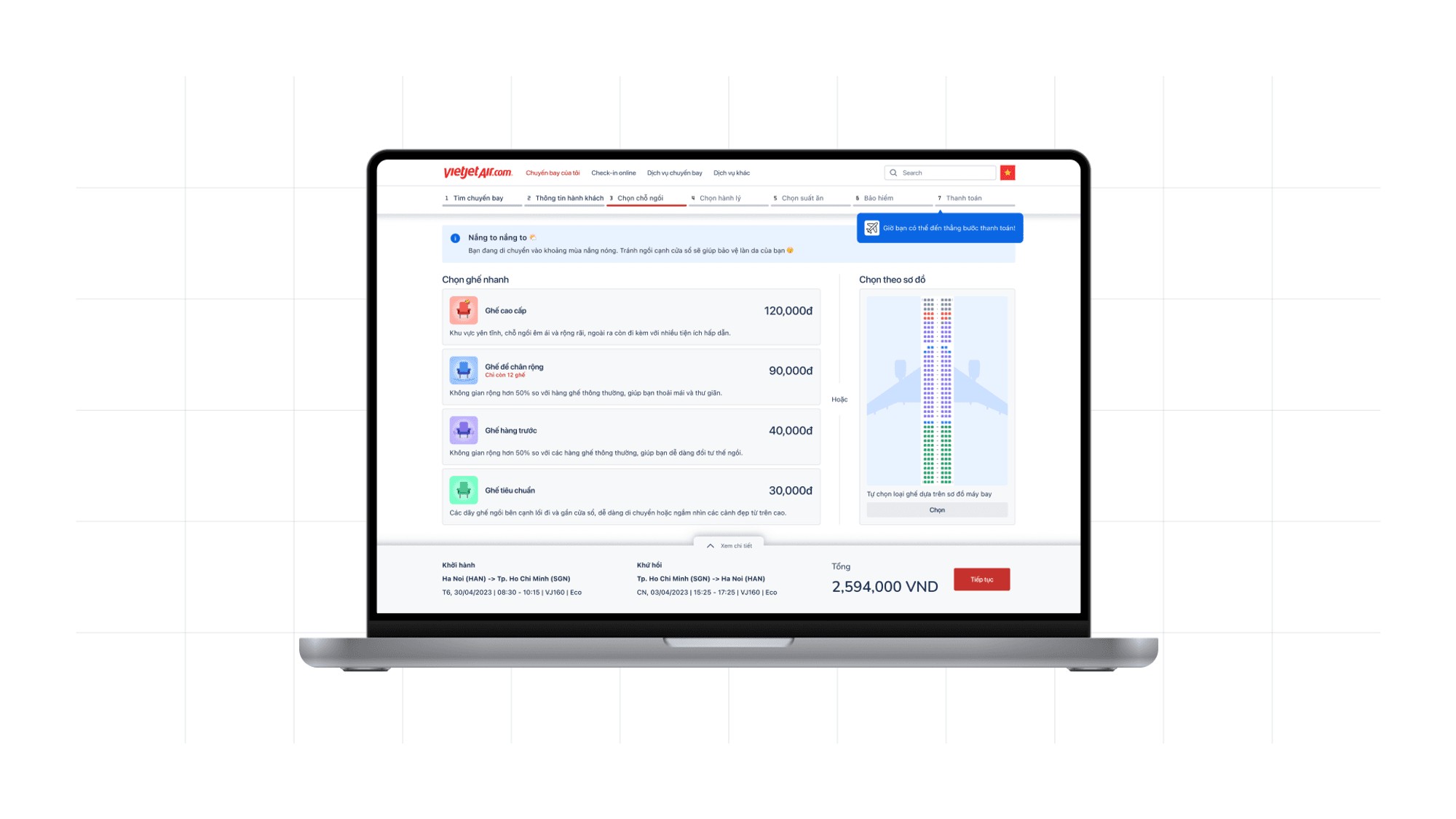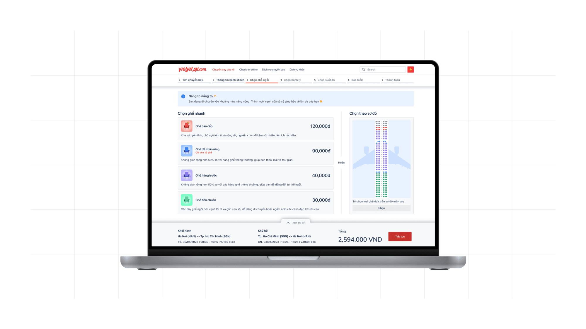 Case Study: Redesigning flight booking flow on VietJet Air’s website to promote sales and up-sale