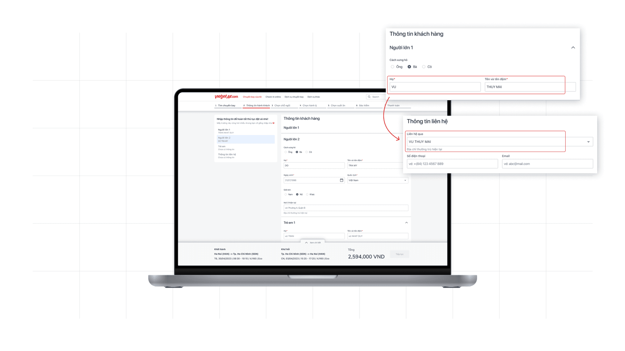 Scenario 2: Suppose you need to book a return ticket from Hanoi to Dalat for a family trip next month. You need to book tickets for yourself and 2 family members (including 1 small member under 2 years old). How do you find and book flight tickets to get the cheapest fares with additional services?